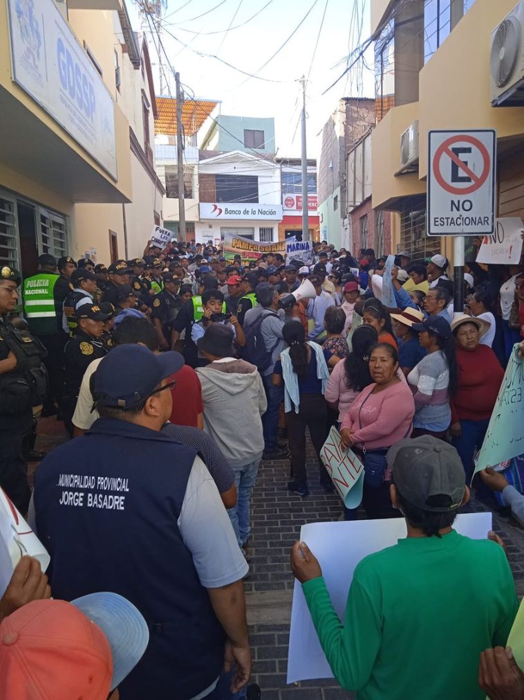 Regional. – En medio de una bulliciosa manifestación de respaldo al alcalde provincial de Jorge Basadre, Julio Davalos Flores. Gritos, insultos, agravios y amenazas se oyeron durante la sesión de vacancia propuesta por la regidora de mayoría Marina Paula Condori Mamani, el fundamento del pedido se basa en el que los aportantes de la campaña electoral del hoy alcalde que rindieron su informe a la ONPE aparecen como trabajadores de confianza en la planilla de pago de la actual gestión, sobre ese argumento la regidora Condori Mamani planteo al consejo edil la vacancia, lo curioso es que la plancha que llevo el hoy alcalde le dio la espalda durante la votación, a excepción de la 1ra regidora Catherine Chávez y el regidor de oposición ex alcalde de Ilabaya Juan Paria Gallegos cabe recordar que el ex alcalde postuló como candidato a la provincia y compitió con el hoy alcalde.